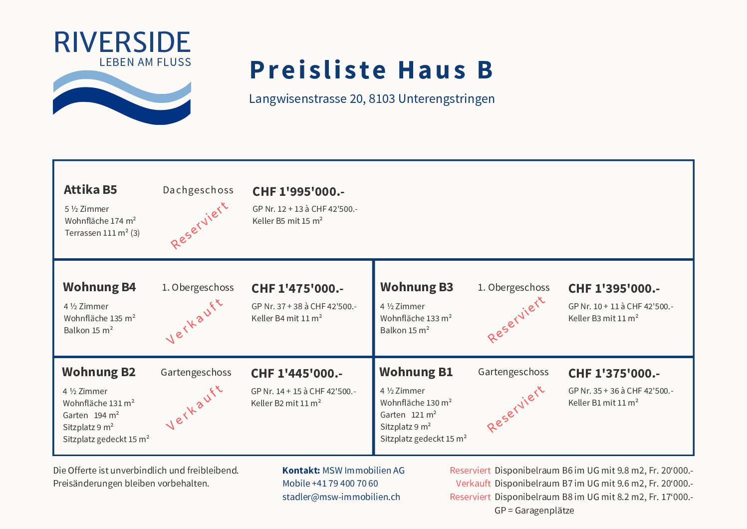 Die zwei zusammengebauten Mehrfamilienhäuser B + C mit je 5 Wohnungen wurden in der Zeit von anfangs 2007 bis Spätsommer 2008 erstellt und deren Wohnungen im Herbst 2008 den Mietern übergeben. Im Jahr 2024 entschied die Eigentümerschaft, die Wohnungen zu verkaufen. In der Zwischenzeit haben wir die 10 Wohnungen und 19 Garagenplätze sowie 6 Disponibelräume im Stockwerkeigentum begründet und 5 der 10 Wohnungen an Mieter verkauft – ein gutes Zeichen, wenn langjährige Mieter ihre bewohnten Mietwohnungen kaufen. Die restlichen 5 Wohnungen, 10 Garagenplätze und 4 Disponibelräume verkaufen wir nun mit unterschiedlichen Bezugsterminen an externe Kaufinteressenten.